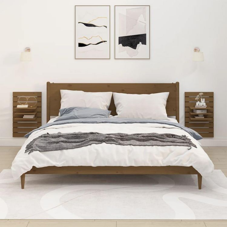 Etageres de chevet murales 2 pcs Marron miel Bois de pin massif
