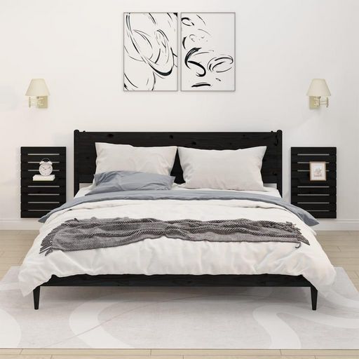 Etageres de chevet murales 2 pcs Noir Bois de pin massif