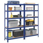 Etageres de rangement a 5 niveaux 2 pcs Bleu Acier et bois