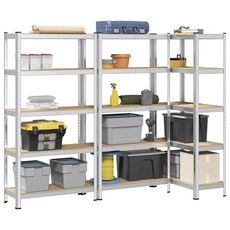 Etageres de rangement a 5 niveaux 3 pcs acier bois d'ingenierie