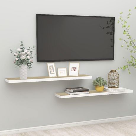 Etageres flottantes 2 pcs chene et blanc 120x23,5x3,8 cm MDF
