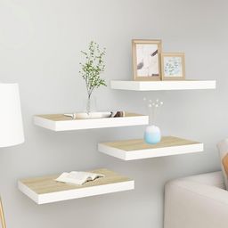 Etageres flottantes 4 pcs chene et blanc 50x23x3,8 cm MDF