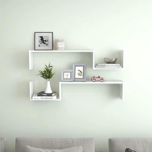 Etageres murales 2 pcs blanc brillant bois d'ingenierie