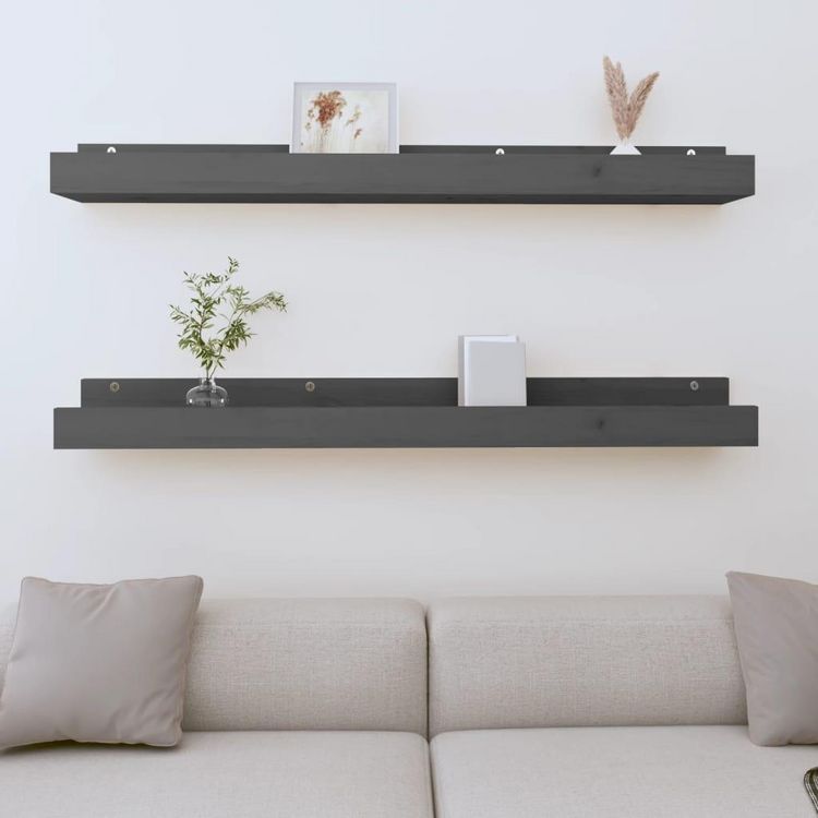 Etageres murales 2 pcs Gris 110x12x9 cm Bois de pin massif