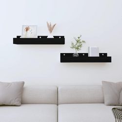 Etageres murales 2 pcs Noir 50x12x9 cm Bois de pin massif