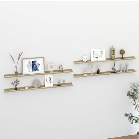 Etageres murales 4 pcs blanc et chene sonoma 115x9x3 cm