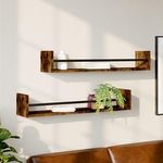 Etageres murales avec barres 2 pcs chene fume 80x16x14 cm
