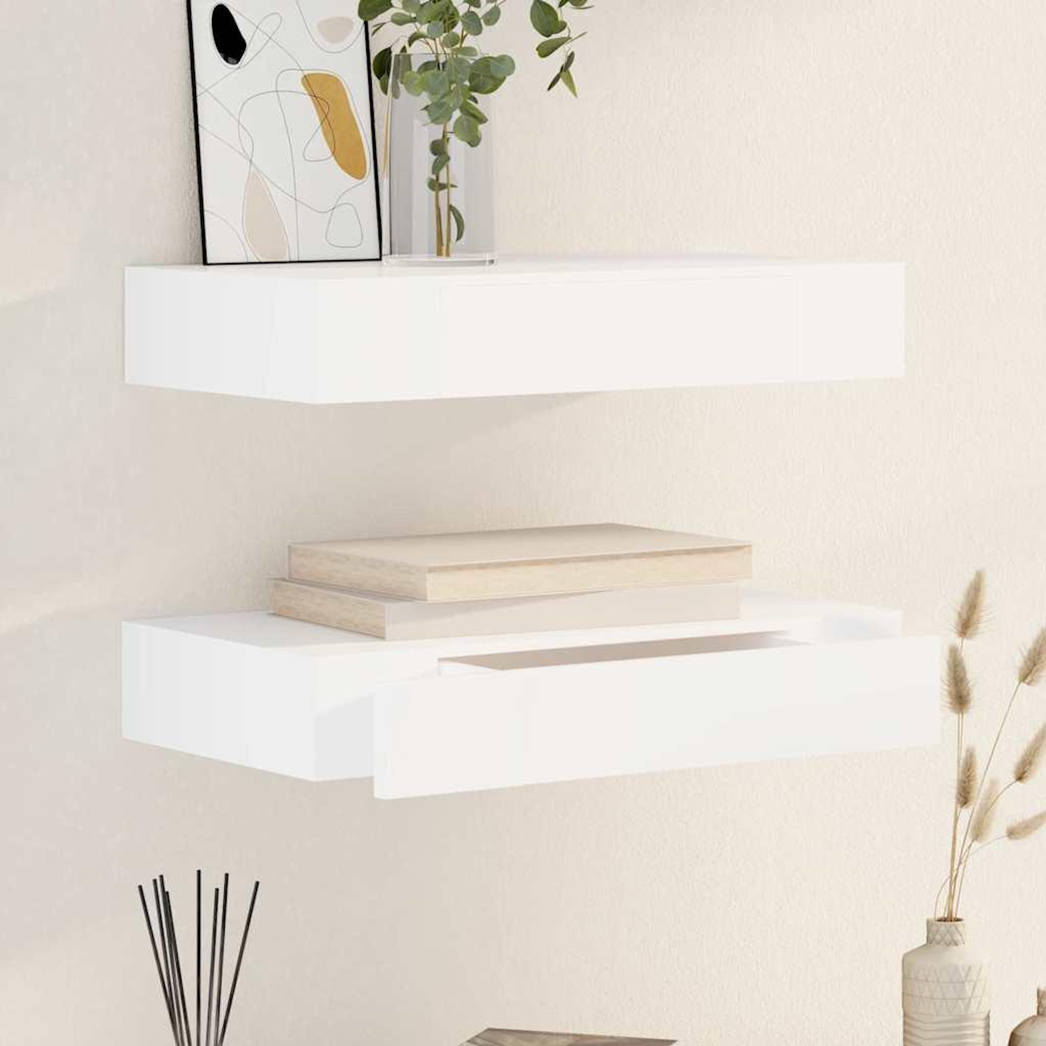 Etageres murales avec tiroirs 2 pcs Blanc 48 cm