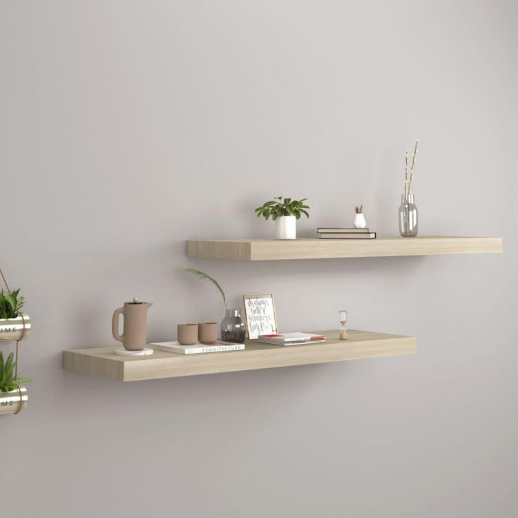 Etageres murales flottantes 2 pcs Chene 80x23,5x3,8 cm MDF