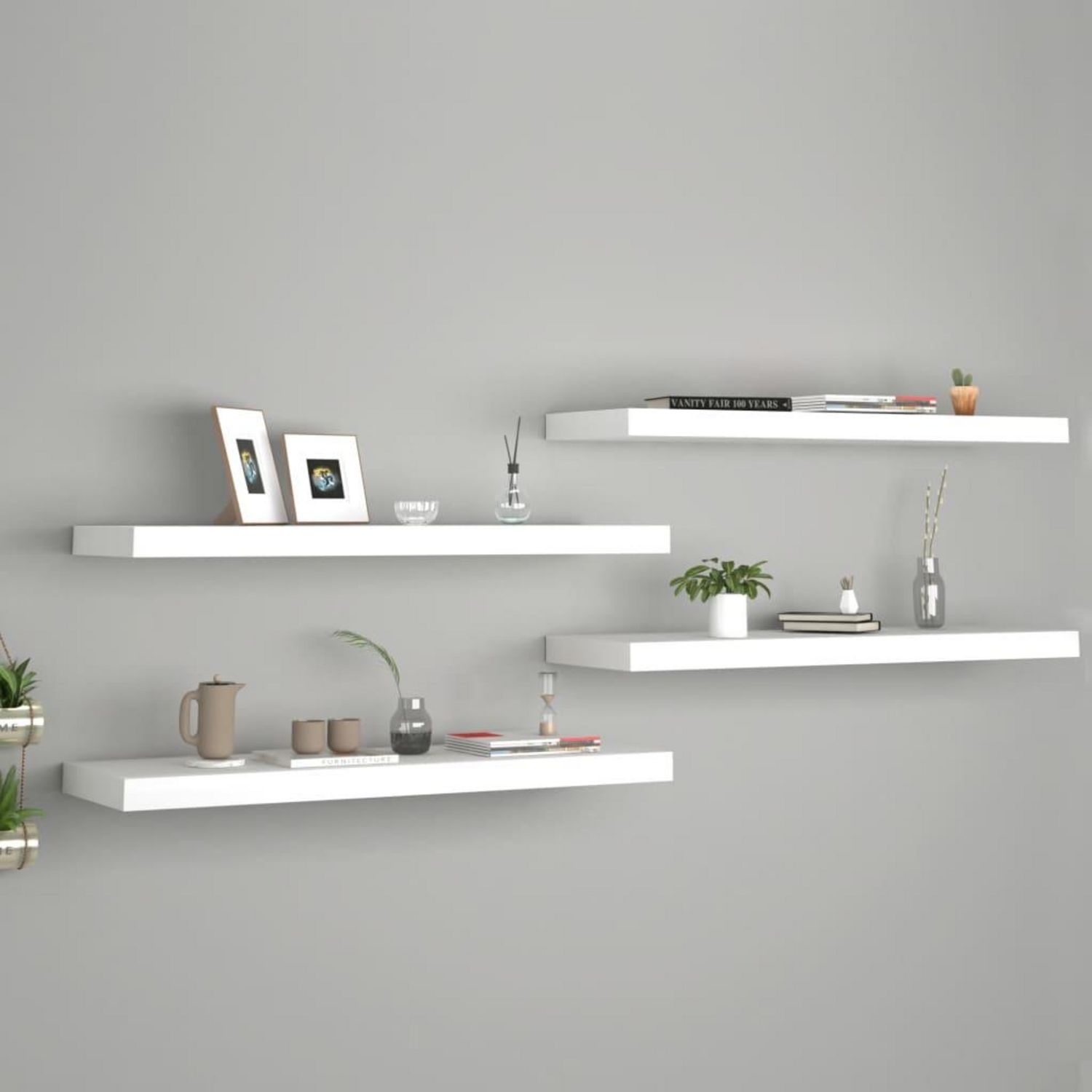 Cet ensemble de 4 elegantes etageres murales est destine a etre le point de mire de votre maison. Avec un systeme de montage invisible, cette etagere murale est facile a installer et sert d'endroit ideal pour placer les articles tels que des distinctions, des livres, des objets de collection, des or