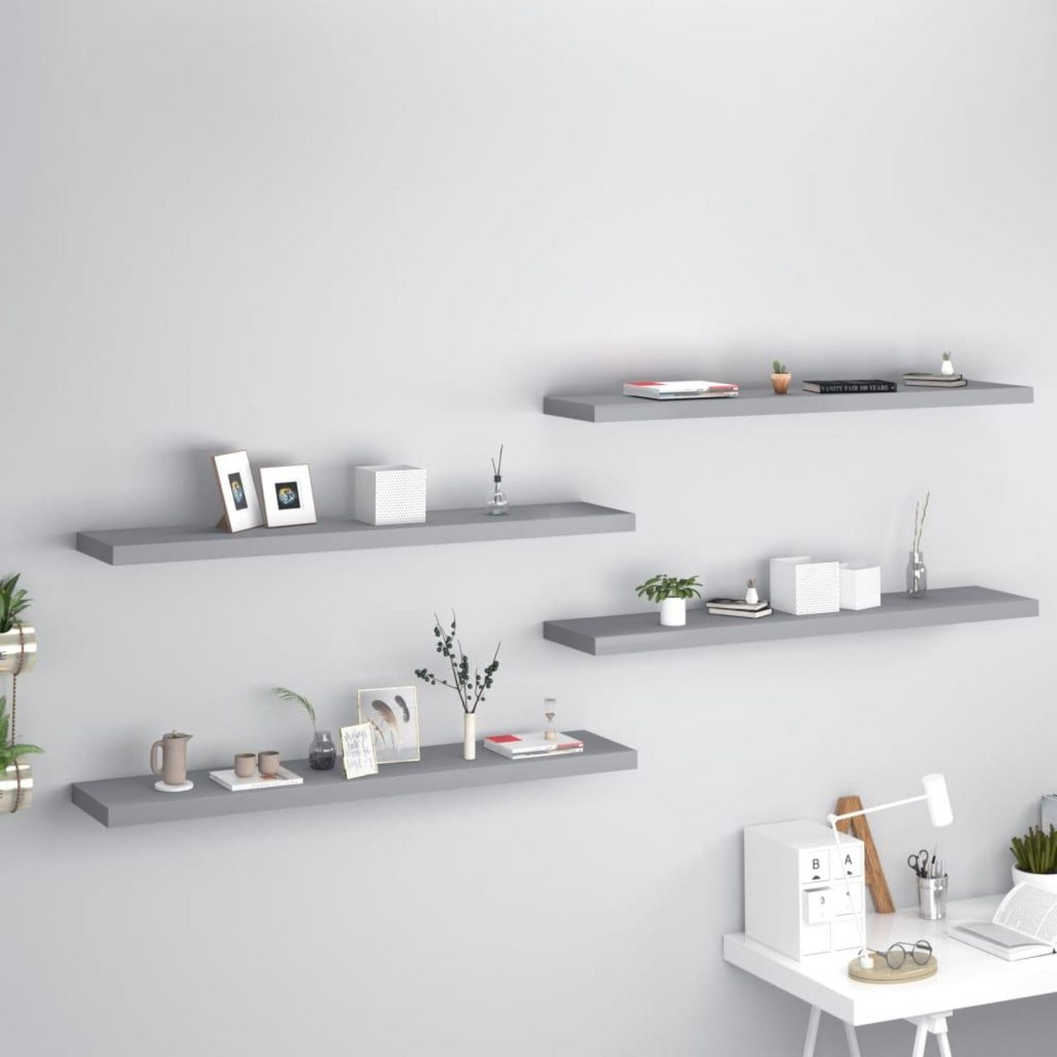 Etageres murales flottantes 4 pcs gris 120x23,5x3,8 cm MDF