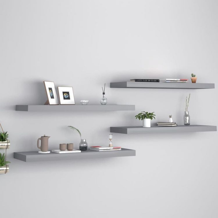 Etageres murales flottantes 4 pcs gris 80x23,5x3,8 cm MDF