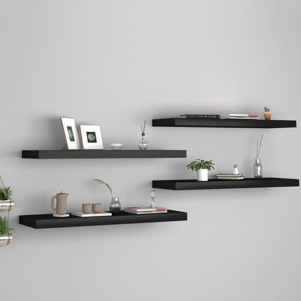 Etageres murales flottantes 4 pcs noir 80x23,5x3,8 cm MDF