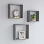 Etageres murales sous forme de cube 3 pcs Gris MDF