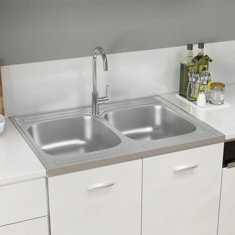 Evier de cuisine a double lavabo argente 800x600x155 mm inox