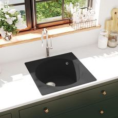Cet évier est fabriqué à partir d'un mélange de 80 % de quartz et 20 % de résine, ce qui lui confère une résistance remarquable aux chocs et aux taches. Les dimensions totales de 480 x 480 x 197 mm (longueur x largeur x hauteur) et les dimensions du lavabo de 420 x 185 mm (diamètre x hauteur) offrent un espace de travail généreux pour vos activités culinaires.