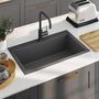 Profitez de l'avantage de cet evier de cuisine au design contemporain epure. La vasque a finition soyeuse et satinee suintera la alte et la sophistication, qui s'adaptera a n'importe quel decor de cuisine !