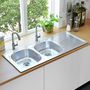 Cet evier de cuisine de qualite a deux vasques considerables avec un egouttoir etendu sur le cote. Il est livre avec la crepine et le piege et sera un excellent choix pour votre cuisine.