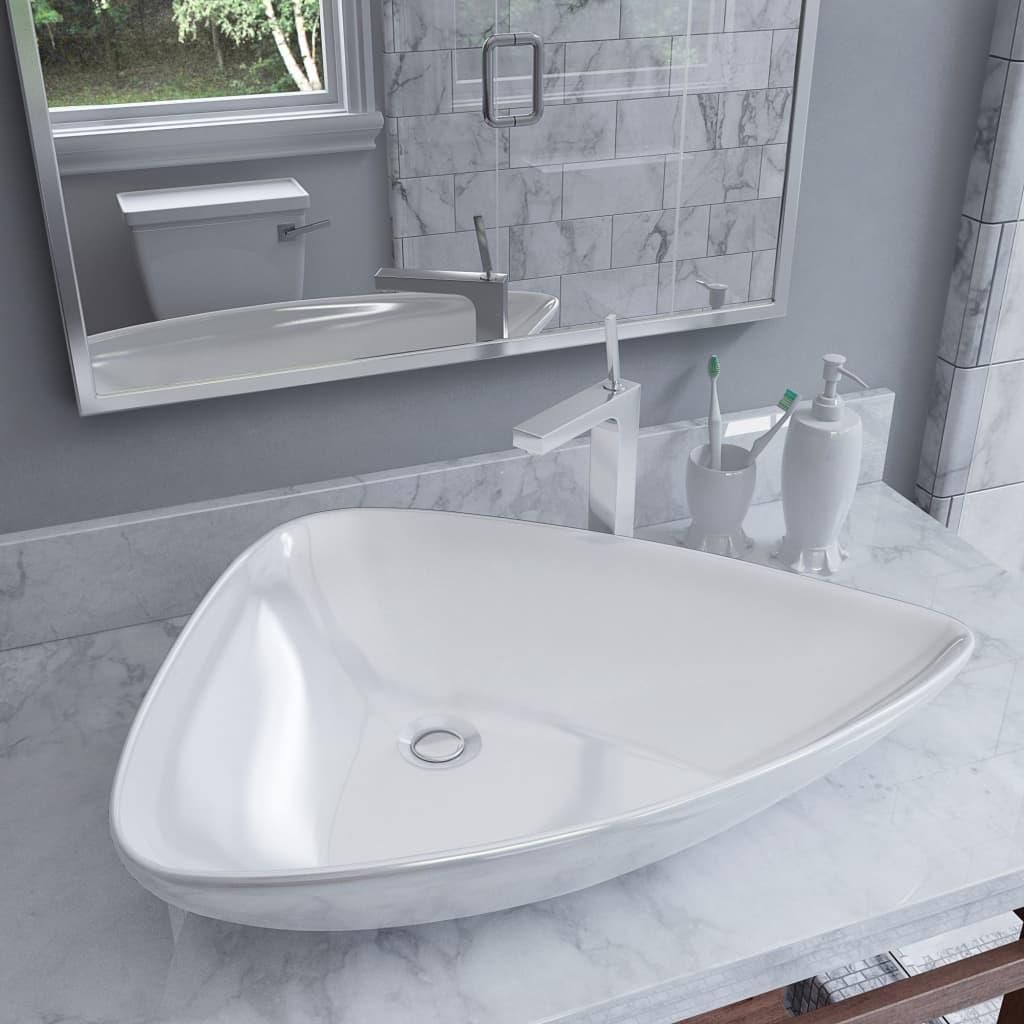 Ce lavabo en ceramique sera un supplement ideal a toute salle de bain, toilette ou vestiaire. Sa surface vitree lui donne un aspect moderne et elegant. L'evier en ceramique est pratique pour une utilisation quotidienne. Il est facile a nettoyer. Veuillez noter que le robinet et le drain ne sont pas