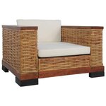Grace au materiau de rotin veritable, le fauteuil est facile a nettoyer, resistant a l'usure et adapte a une utilisation quotidienne. Il dispose d'un cadre en bois robuste, tres durable et stable. Les coussins epais de dossier et de siege sont considerablement confortables et egalement lavables grace a leurs housses amovibles. En outre, les accoudoirs larges s'ajoutent au confort de votre assise.