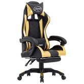 Fauteuil de jeux video avec repose-pied Dore et noir Similicuir