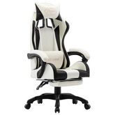 Fauteuil de jeux video et repose-pied Noir et blanc Similicuir