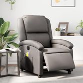 Fauteuil de massage inclinable electrique gris cuir veritable