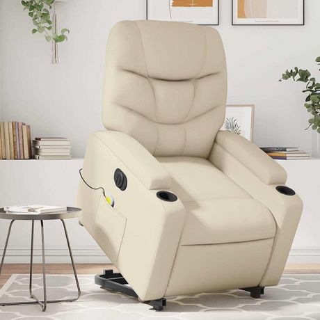 Fauteuil inclinable de massage electrique creme similicuir