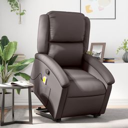 Fauteuil inclinable de massage marron fonce cuir veritable
