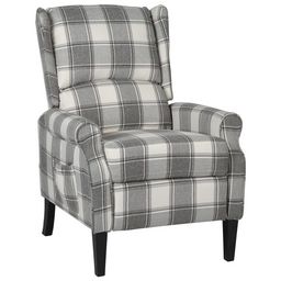 Ce fauteuil inclinable est un choix parfait et constitue un excellent complement a votre espace de vie. Le fauteuil inclinable est fait de tissu et soutenu par des pieds en bois, ce qui le rend durable et doux pour y s'asseoir. Le dossier est reglable vers l'arriere et le repose-pied peut etre regle