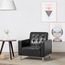 Le fauteuil est dote de decorations a boutons et d'accoudoirs extra larges qui ajouteront une touche de luxe, de alte et de style moderne a tout interieur. Avec un cadre en MDF robuste et des pieds en acier robustes, ce fauteuil est stable et durable. Recouvert de simili-cuir de haute qualite et de mousse, le fauteuil assure egalement un confort d'assise optimal. C'est l'endroit ideal pour regarder un film, lire un livre ou simplement vous detendre !