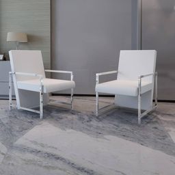Fauteuils lot de 2 avec cadre chrome blanc similicuir