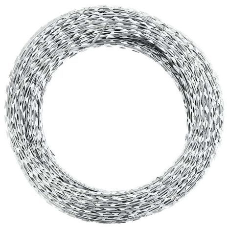 Le fil barbele robuste, qui peut s'etendre jusqu'a 300 m, peut etre enroule sur la partie superieure de la cloture de votre jardin pour plus de securite. Lorsqu'il est enroule, il couvre entre 28 et 60 m de distance. Son design a lames de rasoir decouragera les intrus de penetrer dans votre jardin. Fabrique a partir d'acier galvanise de haute qualite, notre fil barbele resiste a l'eau et aux intemperies et est tres durable.