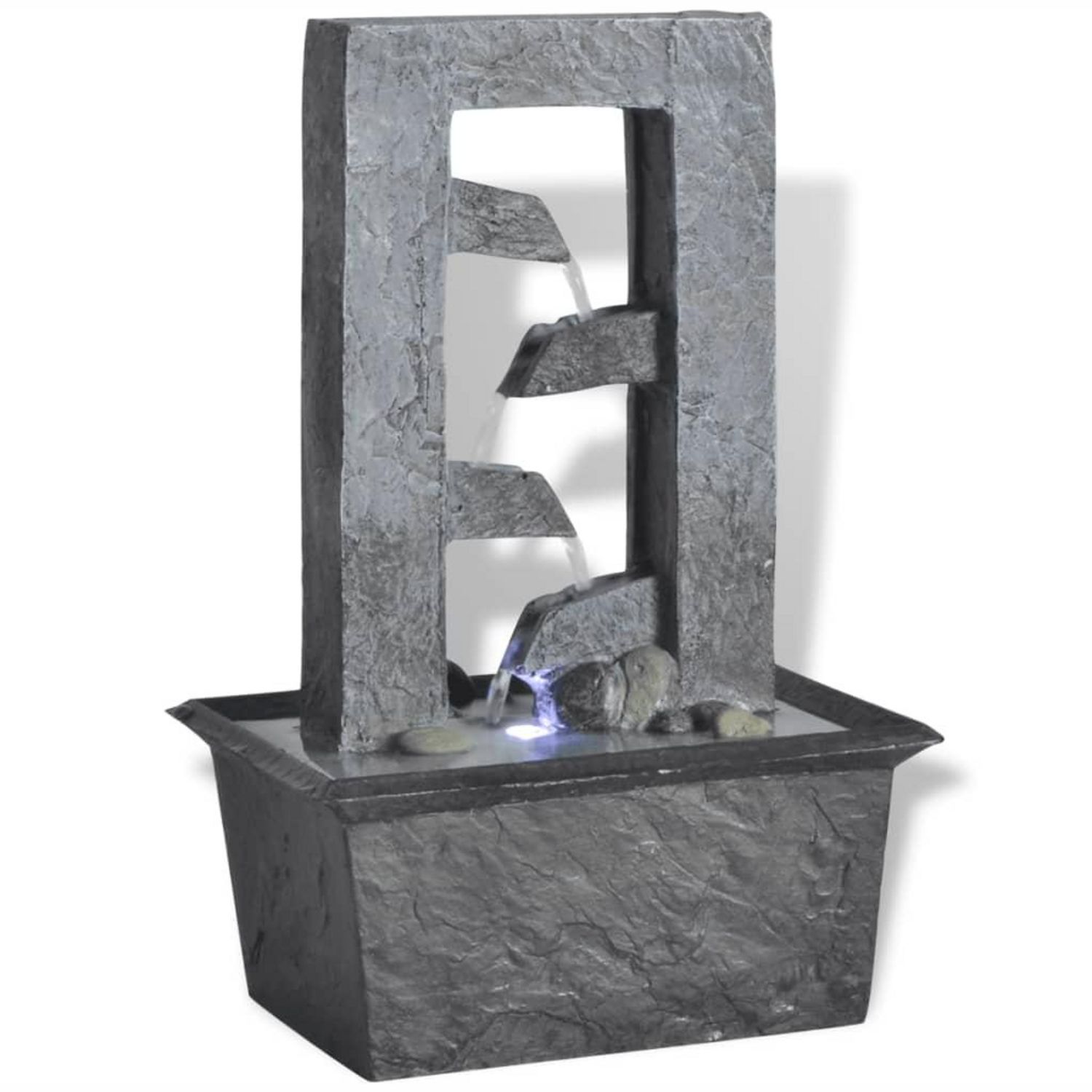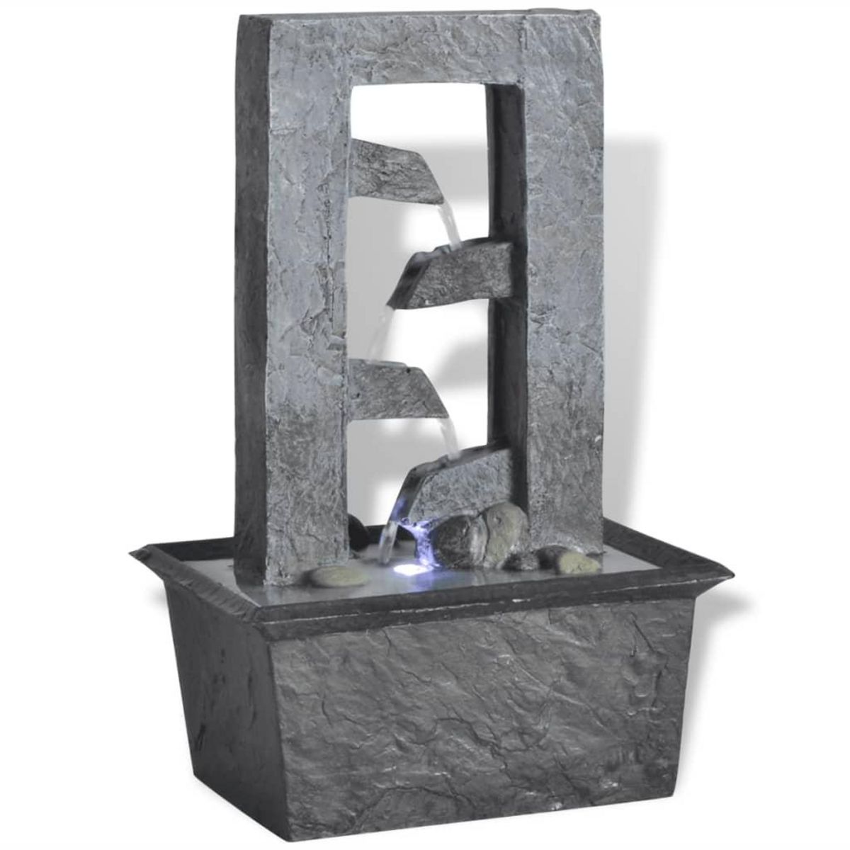 Cette fonction d'eau qui ruisselle va completer tout decor. Elle est eclairee par lumiere LED, ce qui rend un effet visuel magnifique, surtout pendant la nuit. Construite en poly-resine, elle est resistante aux UV, ce qui signifie qu'elle va maintenir son aspect et sa couleur lorsqu'elle est placee en plein soleil. Plusieurs ruisseaux d'eau coulent et le bruit apaisant de l'eau qui ruisselle creent une atmosphere relaxante et meditative. La pompe de haute qualite incluse assure un fonctionnement sur et fiable.