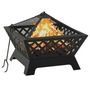 Fabrique en acier, le foyer est excellent pour absorber et rayonner la chaleur. Dote d'un grand bol profond, ce foyer permet un grand feu pour que vous et votre famille puissiez en profiter pendant des heures. La maille vous permet de regarder le feu brulant et enferme le feu pour la securite ainsi que pour empecher les etincelles et les debris de s'envoler. De plus, il y a un anneau pratique dans le couvercle en maille pour que vous puissiez le transporter facilement. Le tisonnier en metal inclus peut etre utilise a la fois pour retirer le couvercle en maille et pour reorganiser les buches.
