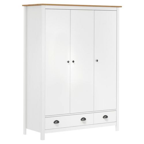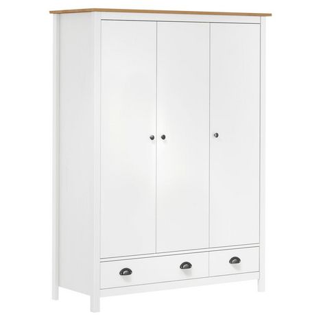 Garde-robe a 3 portes Hill Blanc 127x50x170 cm Bois pin solide