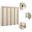 Elle se caracterise par un cadre en fer robuste, rendant la garde-robe facile a deplacer et extremement durable. De plus, elle dispose de quatre compartiments, offrant suffisamment d'espace pour garder vos sacs, chaussures ou petits objets ranges et a portee de main. La housse en tissu avec fermeture a glissiere protegera vos vetements de la salete et de la poussiere.