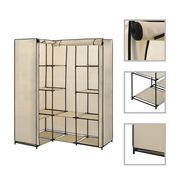 Elle se caracterise par un cadre en fer robuste, rendant le porte-vetements extremement durable. Par rapport a un meuble altique, la structure du meuble d'angle est encore plus stable. L'armoire peu encombrante optimise l'utilisation des coins et offre donc un grand espace de rangement et des options de suspension pour garder vos sacs, chaussures et petits objets ranges et a portee de main. La housse en tissu avec fermeture a glissiere protegera vos vetements de la salete et de la poussiere.