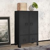 L'armoire de rangement est fabriquee en acier, ce qui la rend durable et facile a nettoyer. Cette armoire est dotee de 2 etageres reglables qui vous permettent de trier soigneusement vos vetements dans differentes categories et de 2 tiroirs pour ranger et organiser vos chaussettes, sous-vetements, etc. Les tiroirs dotes de glissieres a billes a 2 sections assurent une ouverture et une fermeture en douceur, meme en cas de charge accrue (les tiroirs peuvent etre entierement deployes). Chaque porte est dotee d'un porte-etiquettes et de trous de ventilation qui ajoutent a son aspect industriel.