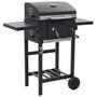Utilisant du charbon de bois comme combustible, ce gril de barbecue est adequat pour griller, rotir et fumer. Vous pouvez surveiller la temperature dans la chambre avec le thermometre integre sur la hotte. Grace a son corps en acier enduit de poudre, notre gril de barbecue a un design elegant et est tres durable. Il est compose de 2 grilles de cuisson emaillees et d'une hotte resistante. Deux tables d'appoint pliables offrent un espace supplementaire pour creer des sauces ou vos plats d'accompagnement preferes. Equipe de 2 roulettes, ce gril est facile a deplacer. Ce barbecue sera surement un article indispensable pour vos activites de plein air.