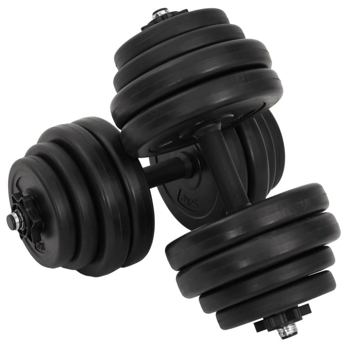 Cet ensemble d'halteres ergonomiques a un poids total de 30 kg (2 x 15 kg). Les halteres ont des poignees en plastique antiderapantes pour que vous puissiez vous entraîner sans avoir a craindre que les halteres ne glissent de vos mains et ne tombent. Les bouchons a vis ont des boulons en etoile pou