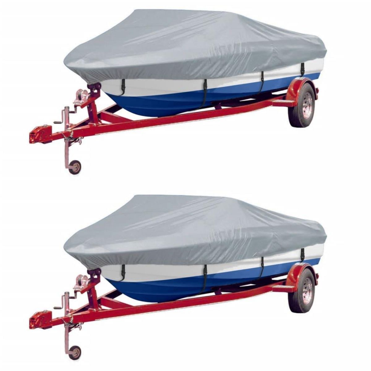 Grace aux coutures a double couture et au cordon elastique renforce, cette housse de bateau robuste est non seulement durable, mais facile a fixer sur le bateau. La livraison comprend 2 housses de bateau.
