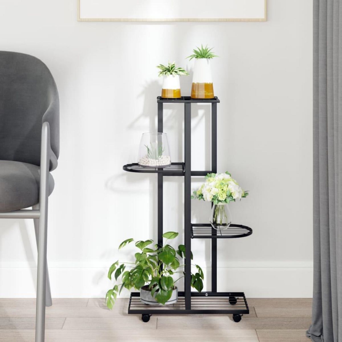 Jardiniere a 4 niveaux avec roues 44x23x80 cm Noir Fer