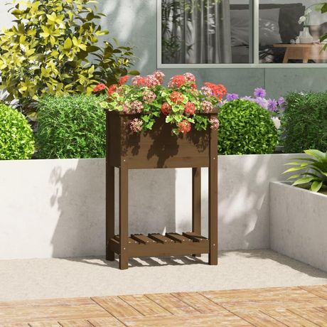 Jardiniere avec etagere Marron miel 54x34,5x81 cm Bois de pin
