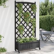 Jardiniere avec treillis et roues noir bois massif de sapin