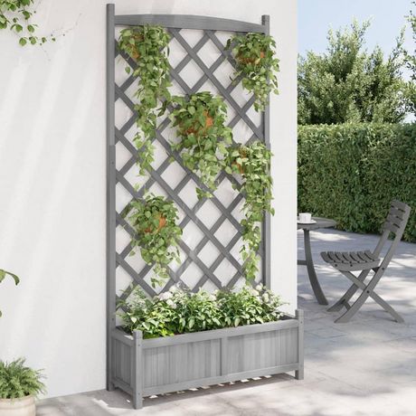Jardiniere avec treillis gris bois massif de sapin