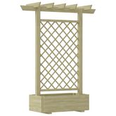 Fabriquee en bois de pin impregne de vert, cette jardiniere en bois est tres robuste, durable et imputrescible. Le treillis integre constitue un excellent support pour les rosiers ou autres plantes grimpantes.