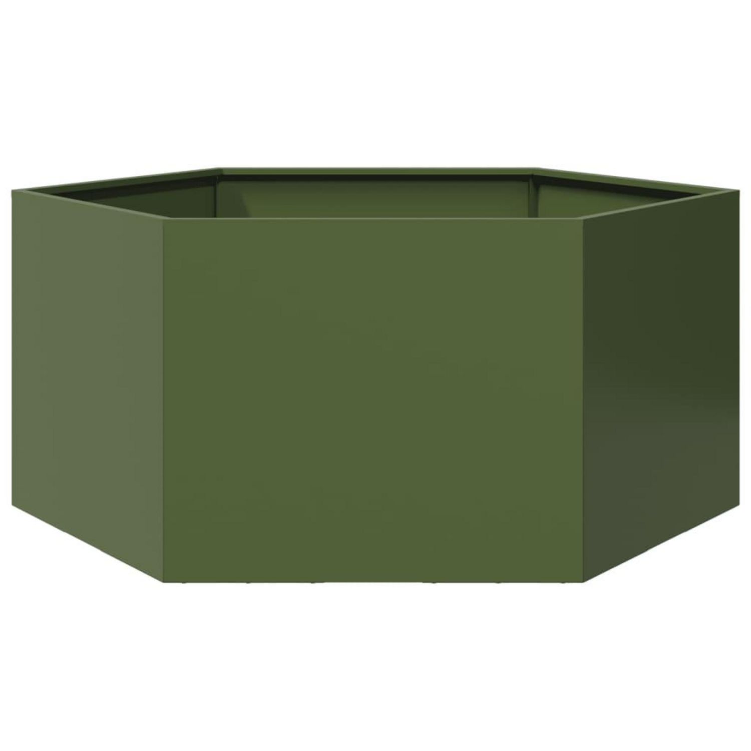 Jardiniere vert olive hexagone 104x90x45 cm acier