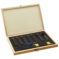 Ces outils sont fabriques en acier au carbone et en carbure cemente, offrant une grande durete et une bonne tenacite. Les porte-outils presentent une finition lisse en oxyde noir, marquee avec le style de porte-outils et la taille de la tige. L'insert de chaque outil est remplaçable et indexable. Les cles interchangeables sont egalement incluses dans la livraison. L'ensemble est livre dans une boîte pour faciliter le stockage et le transport.