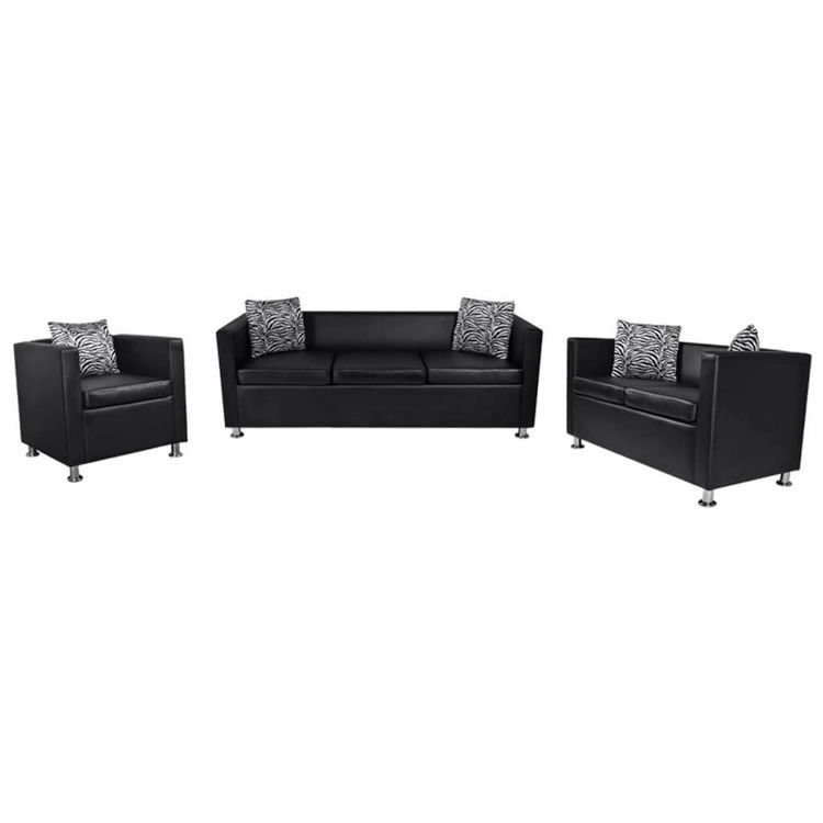 Ce canape, compose d'un canape a 3 places, d'un canape a 2 places et d'un fauteuil cubique en cuir artificiel de qualite, est tres confortable et son design elegant et moderne donnera a votre decor une touche elegante.